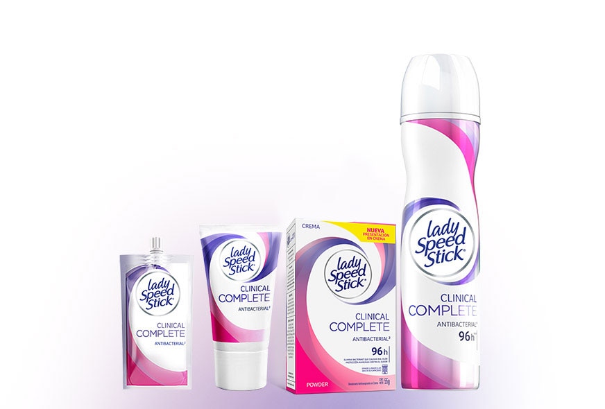 Lady Speed Stick® Clinical Complete Antibacterial**, la tecnología de protección más avanzada***: